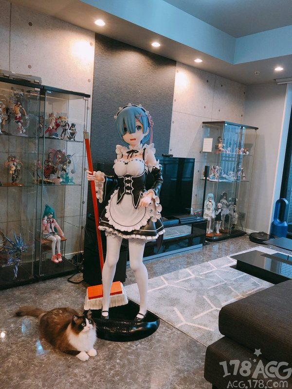这次他返的图就是去年贩卖的蕾姆等身手办,还是一样的有钱,还是一样的金光闪闪的超大house。