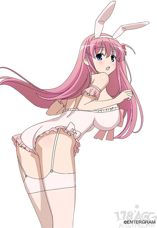 在空中散开的粉色双马尾上扎着蝴蝶结、戴着兔耳朵,原村和微微侧过头面带红霞的凝望着你,似乎是有些欲言又止……