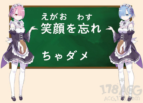 读作:笑(e)顔(ga o)を(wo)忘(wa su)れ(re)ちゃ(chya)ダ(da)メ(me)