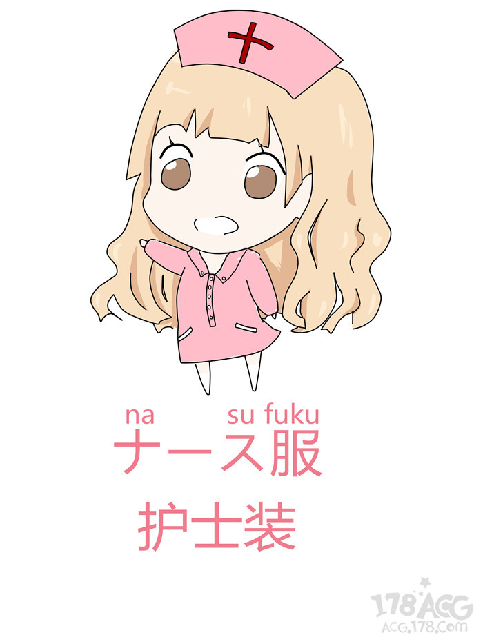 说到护士服,绅士们一定不会陌生,毕竟有句老话叫“娶妻当娶七瀬恋”嘛~“护士”在日文中除了可以说成ナース,还可以说成看护妇,读作:か(ka)ん(n)ご(go)ふ(fu)。